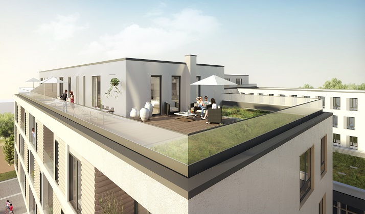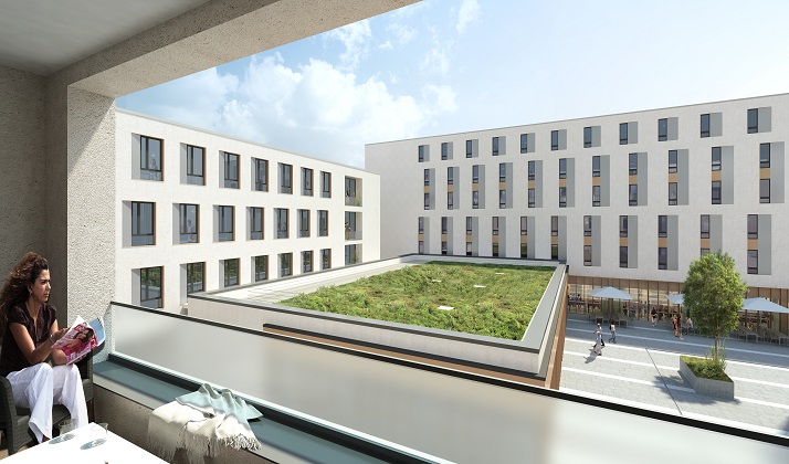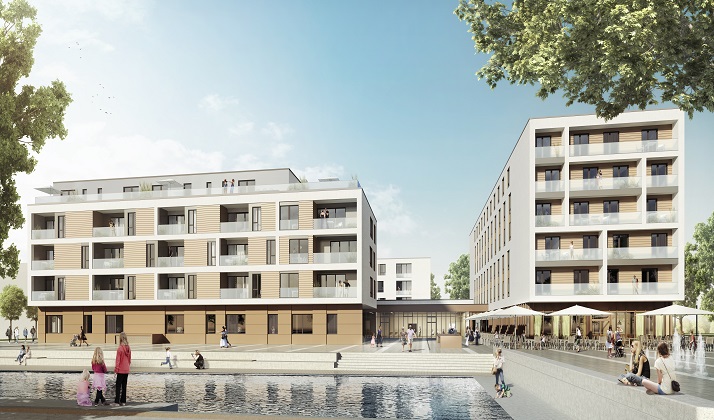 Hier sehen Sie die aktuellen an das Materialkonzept angepasste Visualisierungen des Bismarck Quartiers Düren.